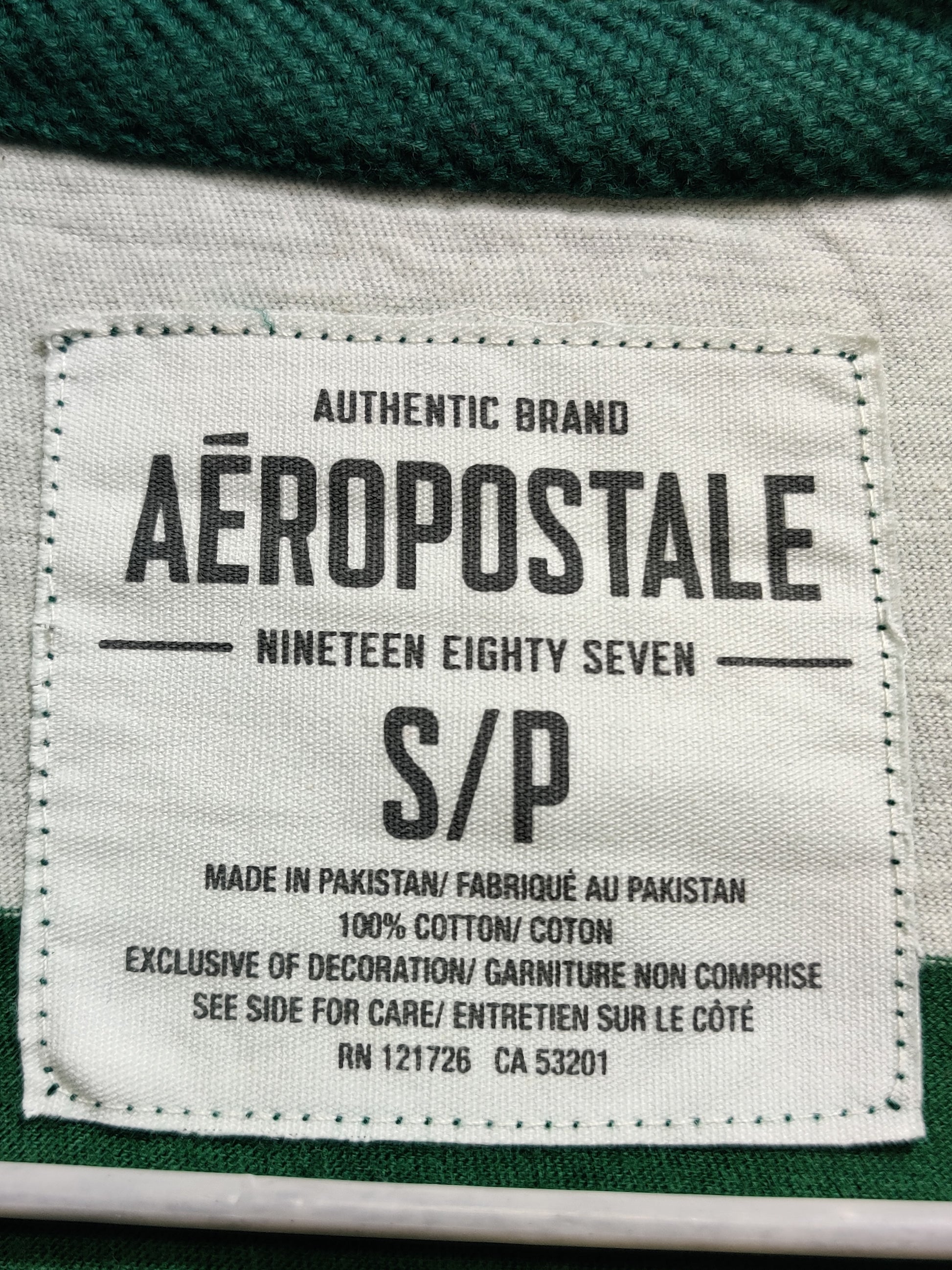 Size Chest: 18 : Inches Length: 27 : Inches Size: Small Brand: Aeropostale Condition: Premium Color: Green Material: