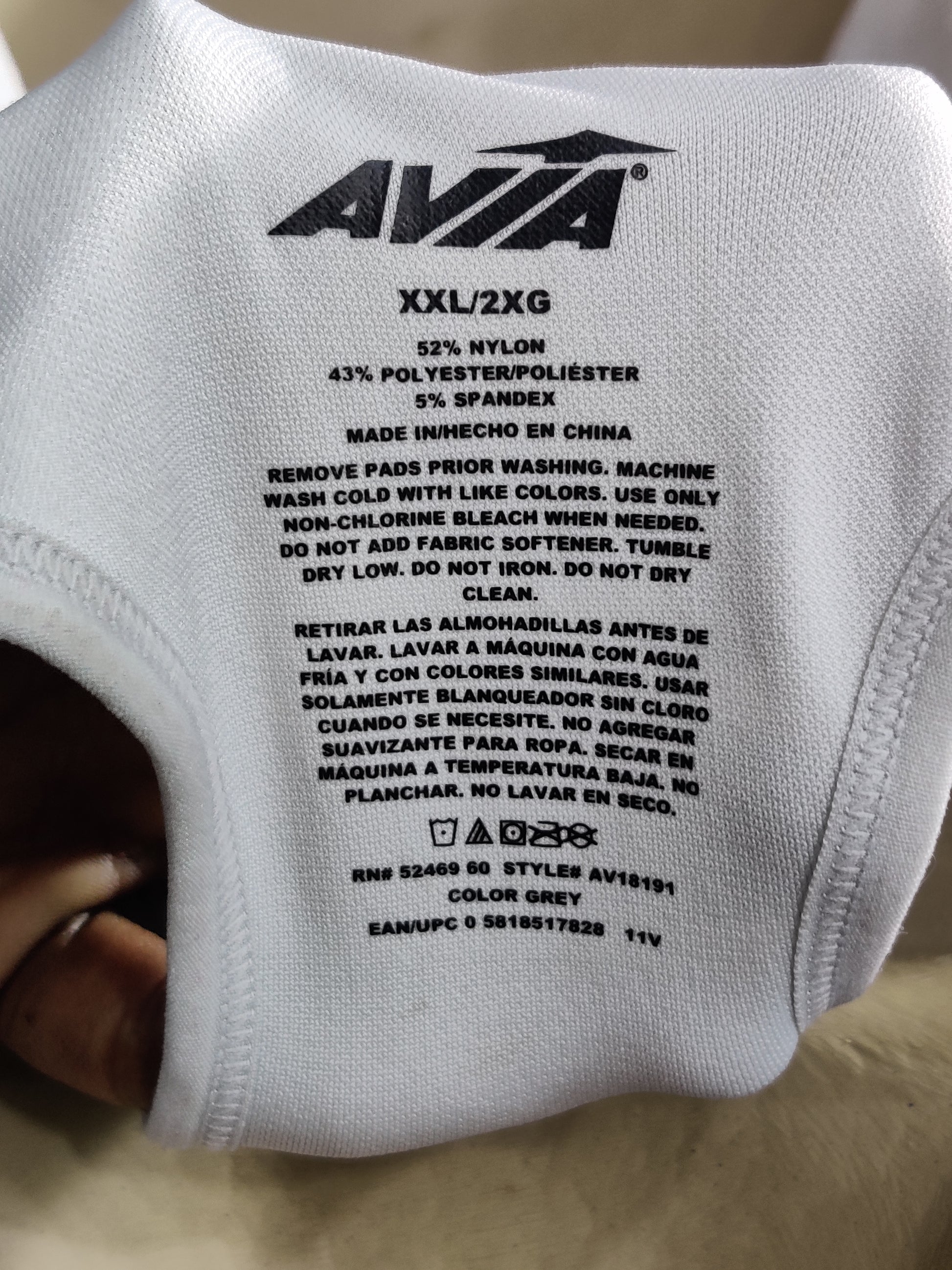Size Chest: 40 to 42 : Inches Size: X Large Brand: Avia Color: White Condition: Premium Material: