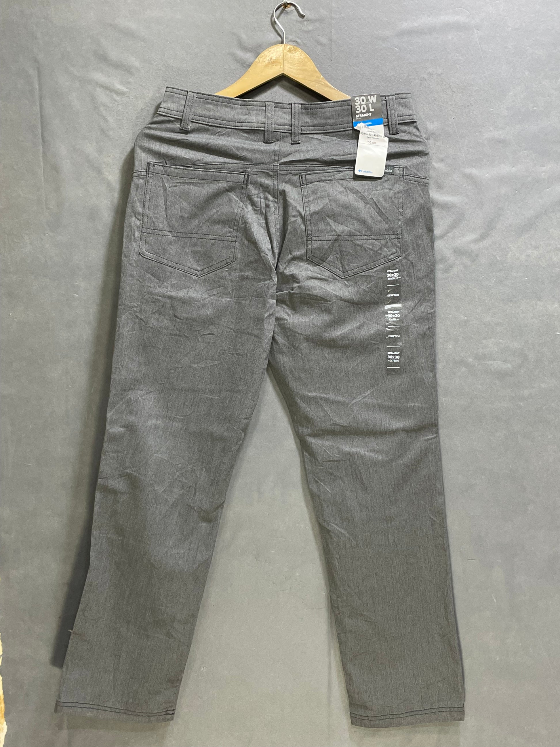 Size Waist: 29 to 30 : Inches Length: 38 : Inches Size: Small Brand: Columbia Color: Gray Condition:
