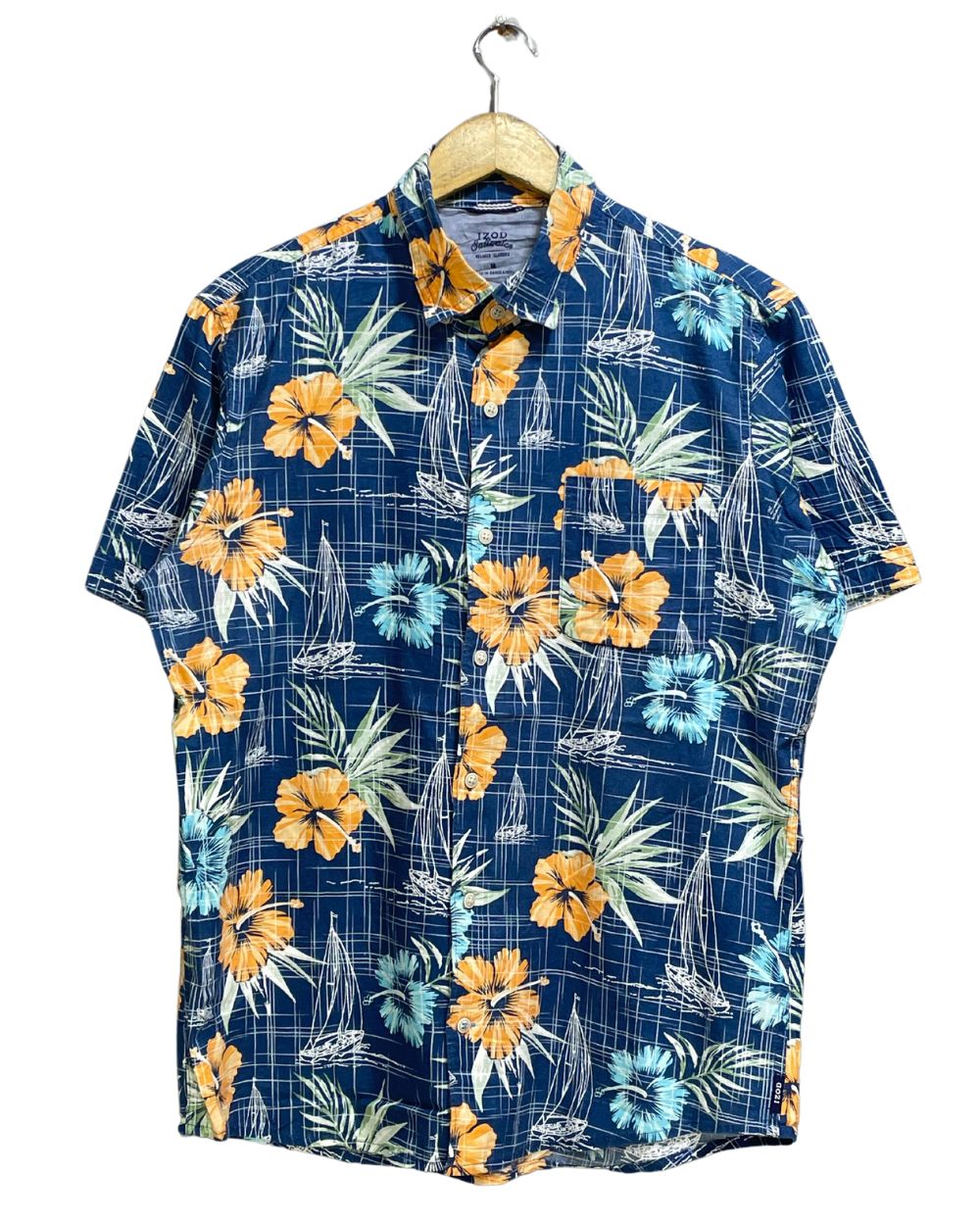 Izod Blue Cotton Shirt For Men Medium