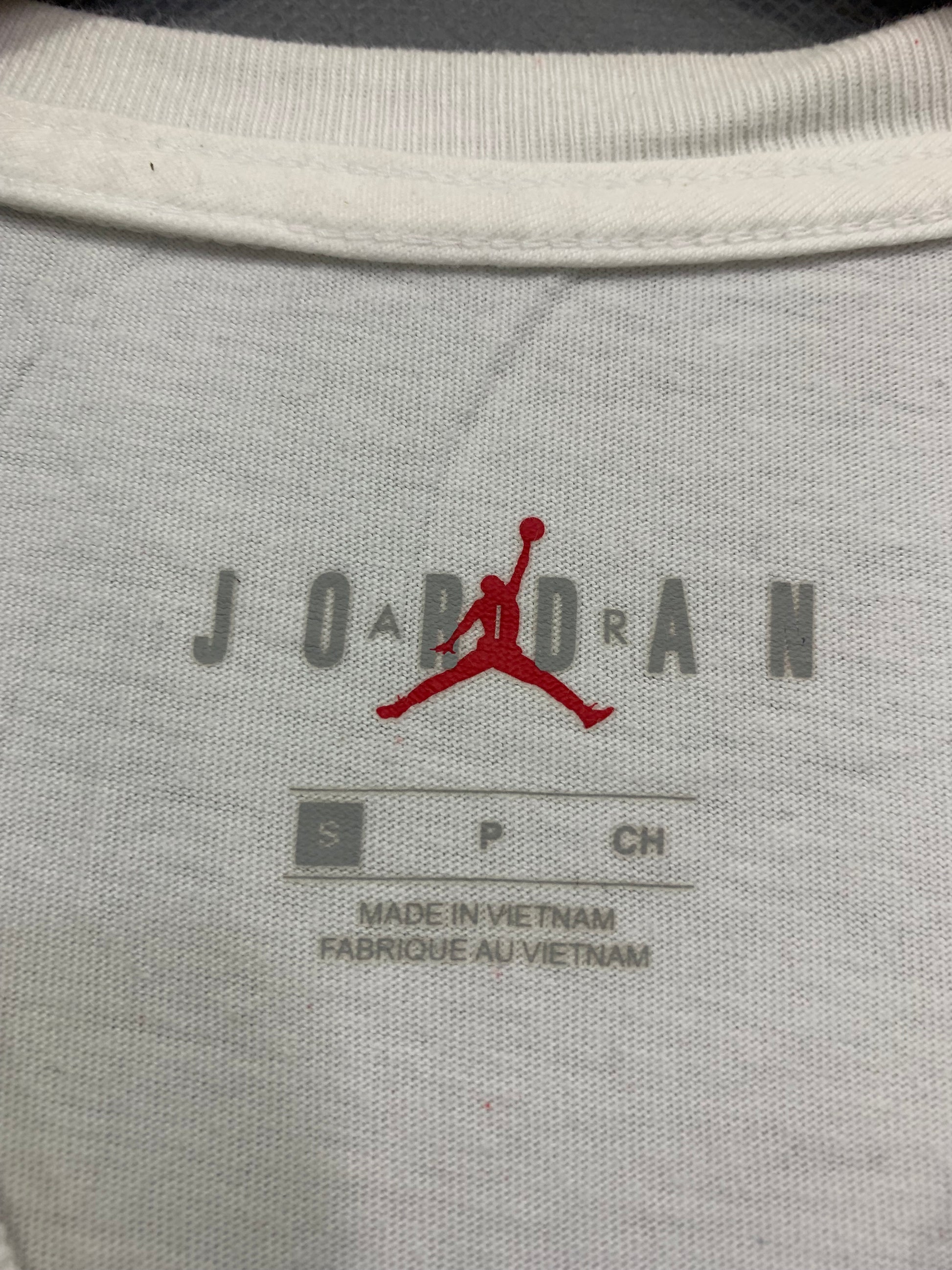 Size Chest: 18 : Inches Length: 27 : Inches Size: Small Brand: Jordan Condition: Excellent Colour: White Material: